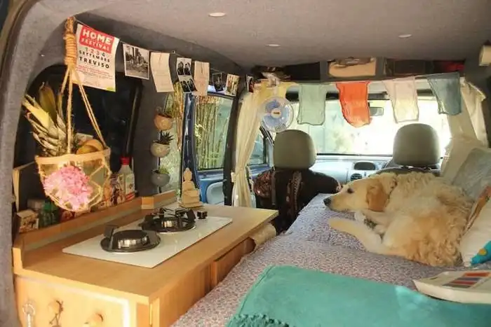 Марина Пиро мечтала путешествовать на авто с своим псом Одди. Она переделала старый пирожок в домик на колесах и отправилась в путь.