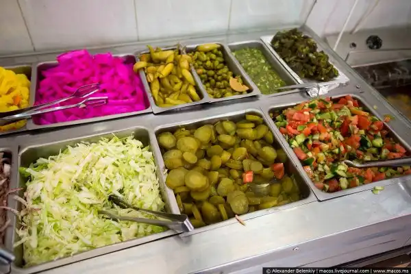 Обычно в блюдо кладут лук и зелень. В первый же день я выучил, как попросить этого не делать.