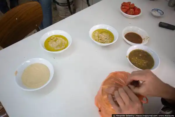 Во время двухнедельной поездки по Израилю и Палестинской Автономии я ел хумус почти каждый день. Везде он был разный. Но самый вкусный, в самом начале путешествия, в городе Акко. Все мне говорили: “В этом городе лучший хумус!” - и это оказалось так. А дело-то, всего лишь в том, что в Акко он горячий, в других местах его подают холодным. И ещё из необычного, в аккианских хумусных добавляют жареный фарш из баранины. Это умопомрачительно вкусно, и нигде больше меня таким не кормили.