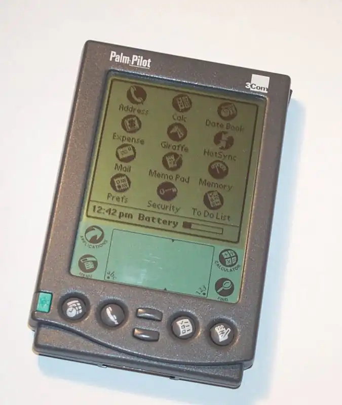 PalmPilot Еще один гаджет, знакомый нам преимущественно по фильмам. На Западе PalmPilot стал настоящим помощником и первым в своем роде органайзером для делового человека. С его помощью можно было вести записи, хранить контакты и отправлять сообщения.