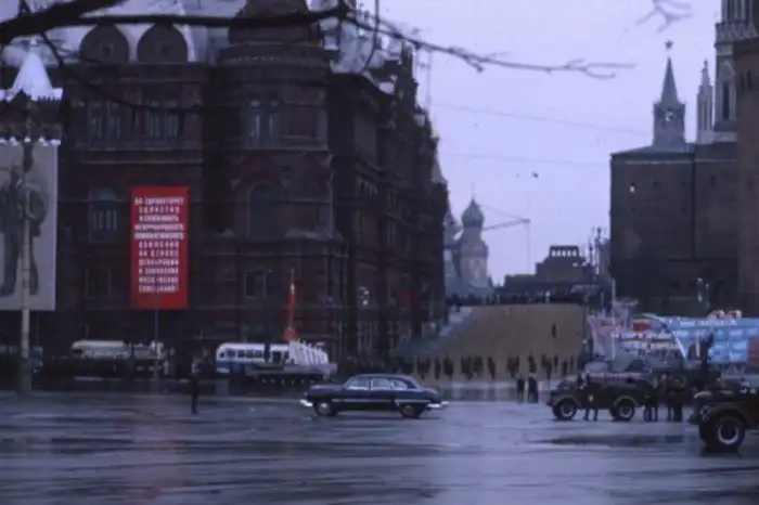 На трибуне присутствовало высшее руководство СССР, среди них Хрущёв, Брежнев, Микоян, Суслов, Косыгин и многие другие. Также на трибуне Мавзолея присутствовали гости из Алжира и Кении, надо было же подкармливать братьев наших меньших.