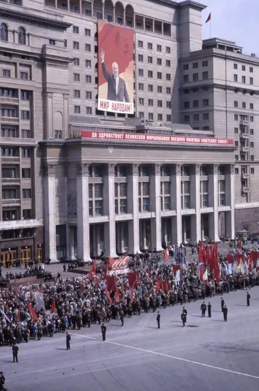 Причем это не просто фотографии туриста. Как вы понимаете приехать в послевоенный Советский Союз, было не так-то просто. Одного желание явно было недостаточно, да и Москва явно не была туристической Меккой для всего мира.