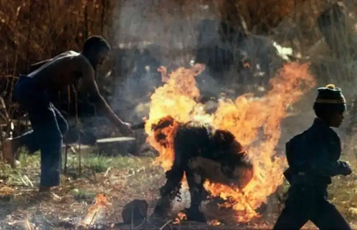 Сторонники Африканского национального Конгресса сжигают человека, в котором заподозрили шпиона зулу. ЮАР, 1990 год.