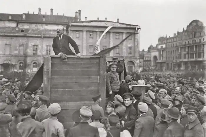 Владимир Ильич выступает перед частями Красной Армии отправляющимися на Польский фронт. Москва, 5 мая 1920 года.