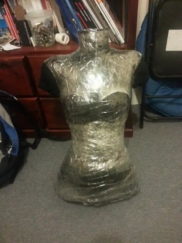 Правда, возлюбленный слишком туго перемотал ей грудь, так что потом на манекен пришлось добавить объема с помощью чашечек