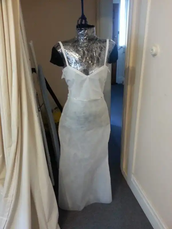 Сначала девушка изготовила из футболки и скотча манекен ее размеров