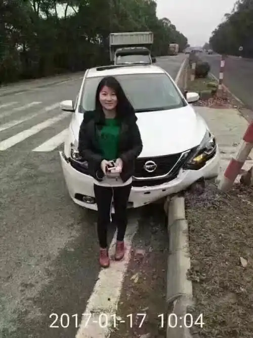 Этой девушке пришлось совсем недолго радоваться счастью покупки новой машины, возможно, она даже установила своего рода рекорд, чем и объясняется ее улыбка на втором снимке.