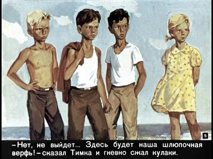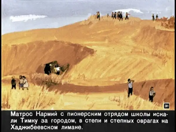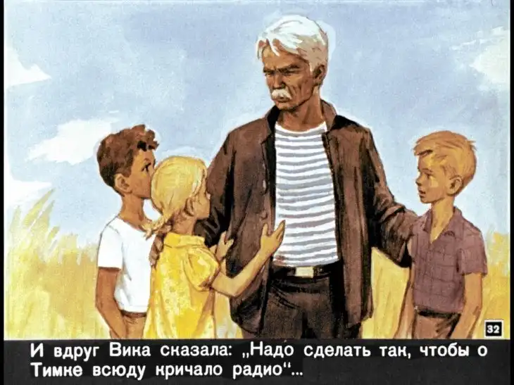 Диафильм выполнен по одноименному рассказу Александра Батрова о смелом и добром Тимке. Батров - мастер психологической новеллы, детских повестей и рассказов. Его книги пахнут морем, в них говорит Одесса и ее жители. Его герои - рыбаки и матросы, капитаны и боцманы, дети и взрослые... Все свое творчество писатель посвятил детям. Многие писатели среднего и младшего поколения вырастали, зачитываясь его книжками. Но во много раз больше число его читателей, излеченных романтикой моря, которая буквально пронизывает все произведения Александра Батрова, стали моряками.