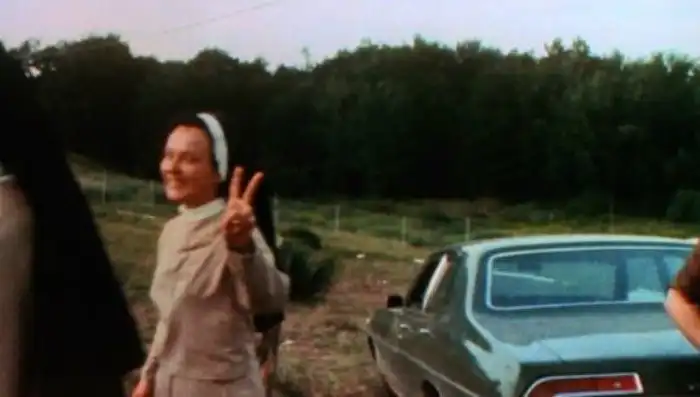 Монахиня на Вудстоке, 1969 год. Многие монахини и другие члены строгих религиозных практик принимали участие в фестивале.