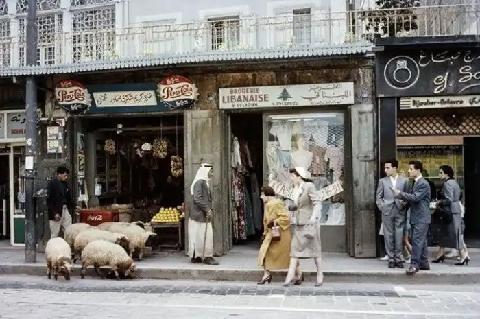 Пастух ведет овец на улице Жорж Пико в Бейруте, 1957 год, Ливан