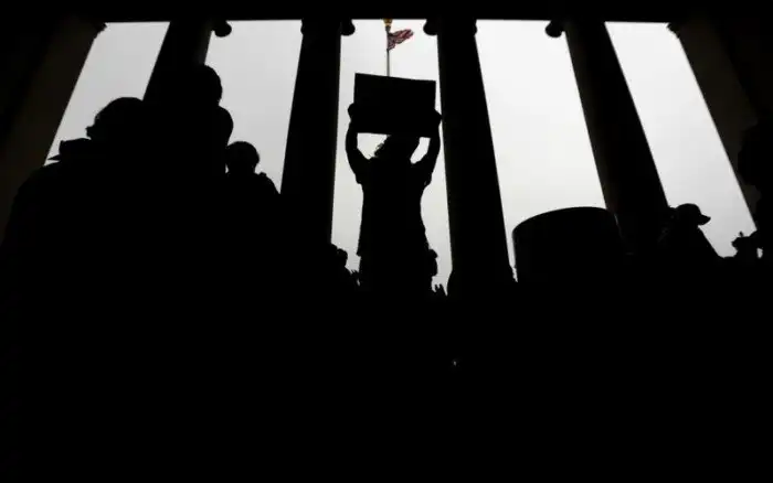 Протестующие собираются в парке Civic Center в Денвере, Колорадо.