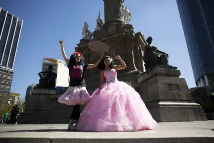 40-летняя демонстрантка на минутку вышла из колонны протестующих, чтобы сфотографироваться с 15-летней девушкой, празднующей свое совершеннолетие.