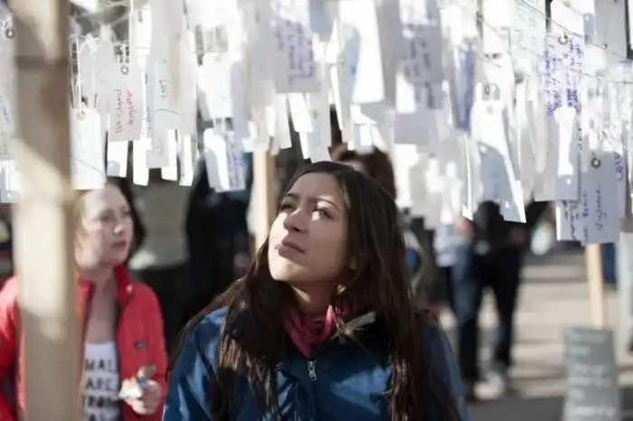Борец за гражданские права Долорес Хуэрта принимает участие в Женском марше во время фестиваля независимого кино "Сандэнс", январь 2017 г.