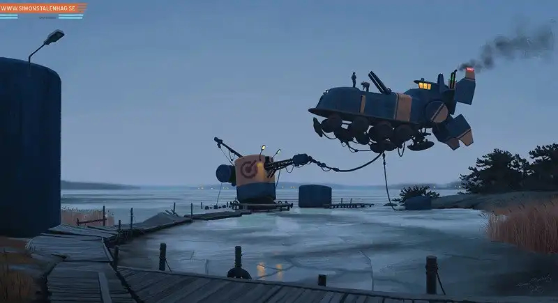 В последствии Столенхаг превратил хобби в карьеру, и до сих пор пишет те же пейзажи, вот только теперь они наполнены роботами, динозаврами, и невероятными машинами.