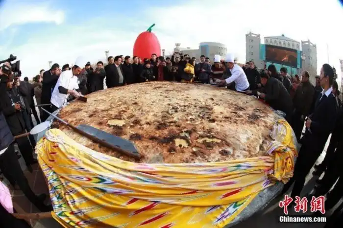 Лепешка была приготовлена из 300 кг муки, 200 кг баранины и 60 кг лука. Процесс приготовления занял более 4,5 часа. Диаметр «пиццы» составил 3,65 метра, что символически означает 365 дней.
