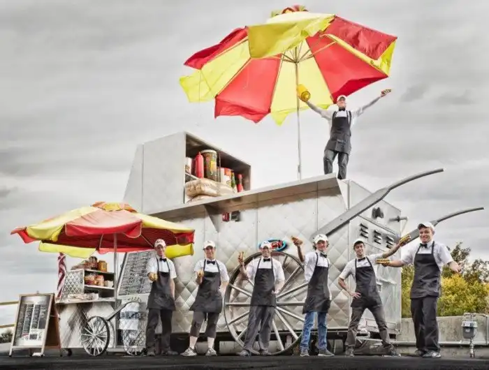 Самую большую тележку с хот-догами создал 44-летний американец Маркус Дэйли. Её габариты — 3,72 метра в высоту, 7,06 метра в длину и 2,81 метра в ширину — позволяют обслуживать до 300 человек в день. Внутри тележки есть даже туалет.