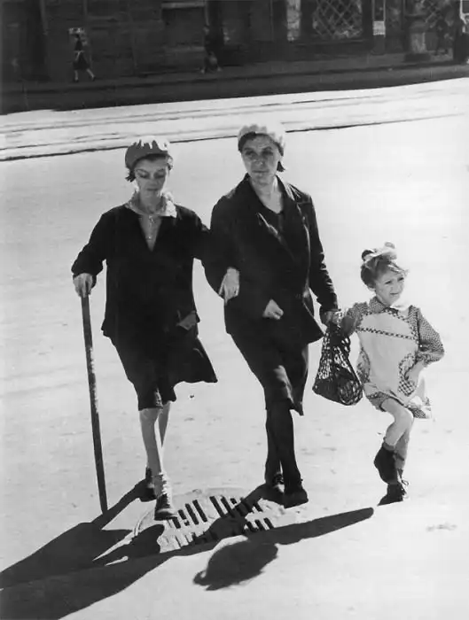 Cемья Опаховых на прогулке по ленинградской улице. Май 1942 года.