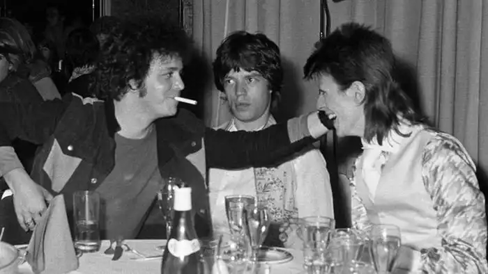 Лу Рид, Мик Джaггер и Дэвид Боуи на банкете в Cafe Royal, 1973 год, Англия