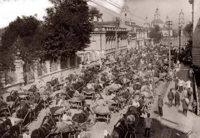 Пробка в центре города Сумы. Сдача зерна. УССР. 1923г.