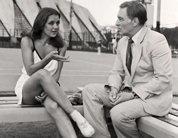 Ирина Алферова и Вячеслав Тихонов на съемках кинофильма «ТАСС уполномочен заявить