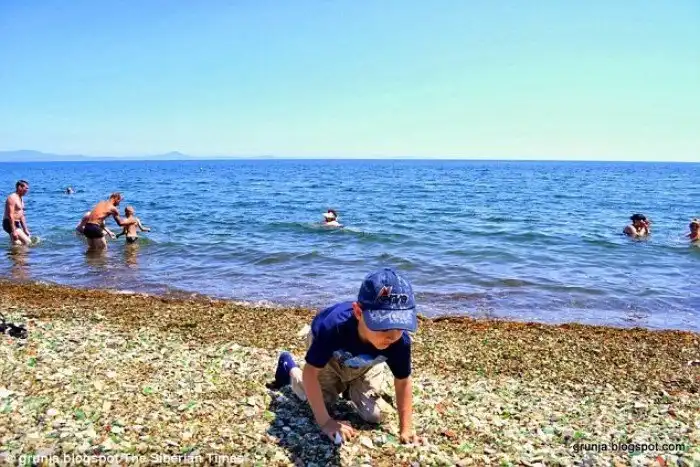 В Стеклянной бухте никогда нет недостатка в посетителях. Пока взрослые загорают, дети собирают красивые разноцветные камешки - точнее, стекляшки. Тщательно отполированные морем, они совершенно не опасны.