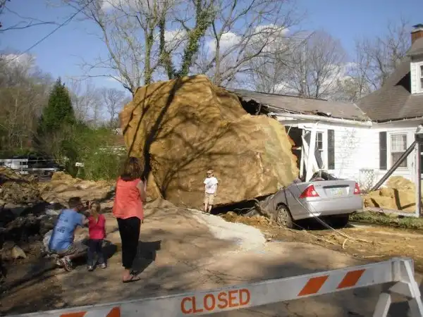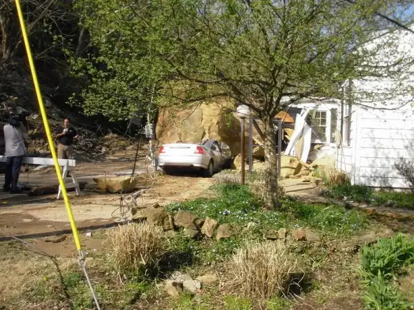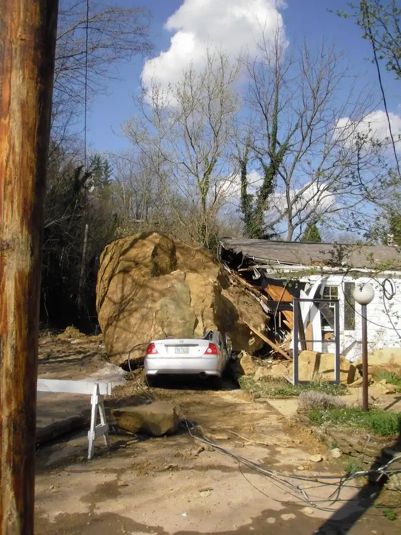 Страшный случай произошел в Атенс (Огайо): огромный валун сорвался со склона. Он практически уничтожил два автомобиля и вход в дом. Но семье, проживавшей в этом доме, еще повезло, если эта фраза уместна в данном случае, ведь валун мог не остановиться и полностью разрушить дом со всеми его жителями.