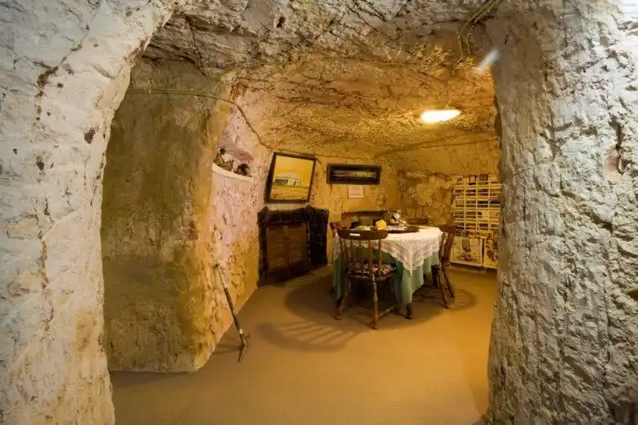 Добычу опалов развернули здесь в 1915 году, и люди быстро сообразили, что спасаться от зноя можно элементарно: не появляться на поверхности и жить в вырытых шахтах. В подземном жилище оптимальная температура поддерживается сама собой — круглый год около 22 градусов по Цельсию.