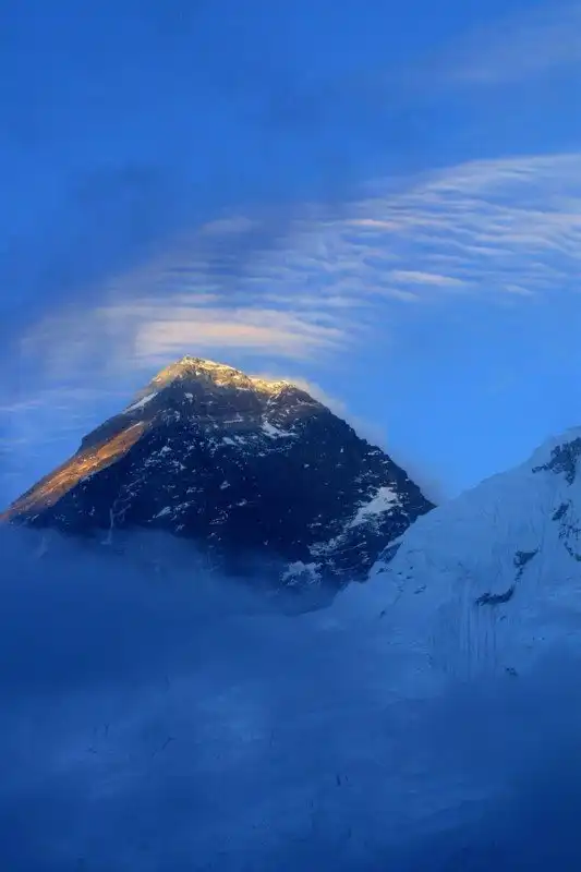 Золотое свечение заходящего солнца на самой высокой вершине мира 15 ноября 1983 года