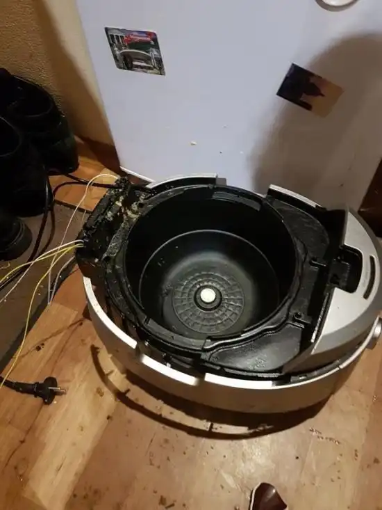Глядя на эти фото, сложно предположить, что произошло на этой кухне, но мы вам подскажем. Оказывается, здесь взорвалась мультиварка, в которой готовилась картошка с ребрышками. Все случилось в тот, момент, когда вся семья, собралась на кухне в ожидании ужина, поэтому в той или иной степени пострадали все. Больше всех досталось, самой кухне, которая оказалась не только запачканной, но и лишилась посуды, так как она разбилась от взрывной волны.
