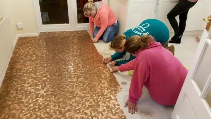 Труженик IT-отрасли Мэтт Джайлс из Великобритании использовал 27 тысяч медных пенни, чтобы создать на кухне пол своей мечты.