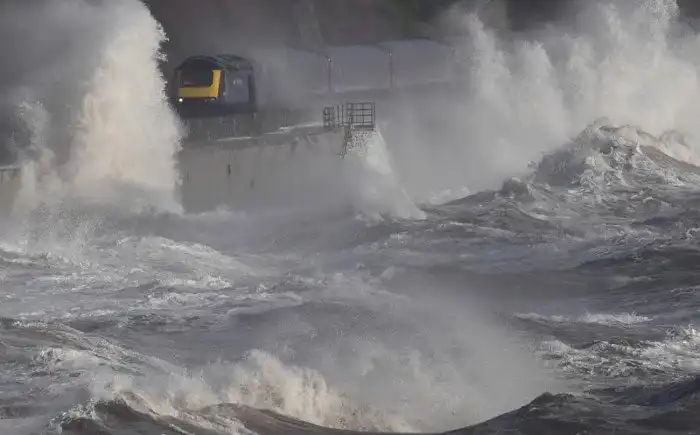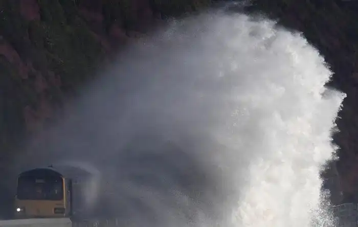 Вот что бывает, когда рельсы проложены по самому берегу океана, а океан этот не слишком спокоен.