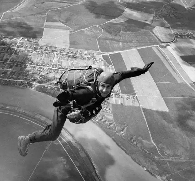 Парашютист совершает прыжок, Московская область, 1959 год