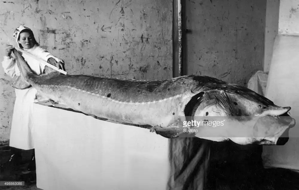 Калуга пойманная на реке Амур,1955г.