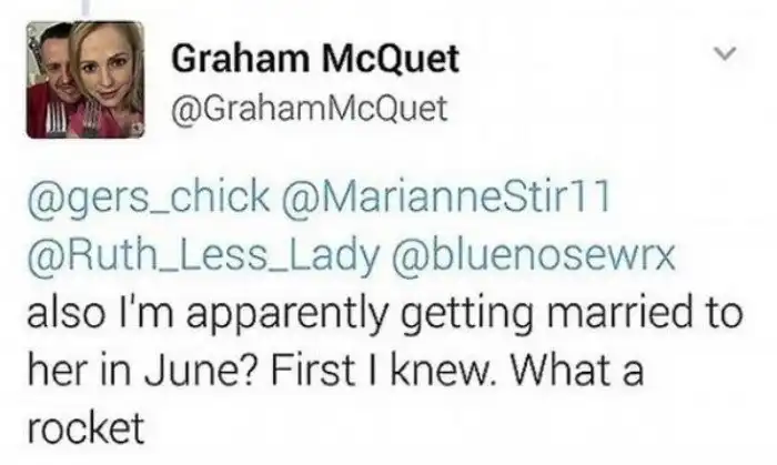 31-летняя Джилл Шарп из Шотландии четыре года назад начала выкладывать в соцсетях совместные снимки с неким парнем по имени Грин, с которым у нее якобы завязались романтические отношения. Несмотря на то, что она вела с ним активную переписку в соцсетях, называя его Мистер Маккей и публикуя фото с цветами и шампанским, в реальной жизни друзья женщины никогда его не видели, так как Джилл Шарп всегда находила уважительную причину, оправдывавшую отсутствие жениха.