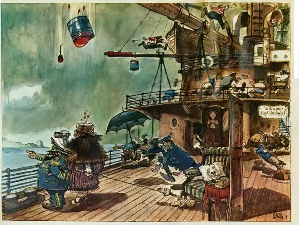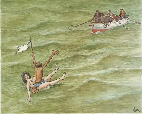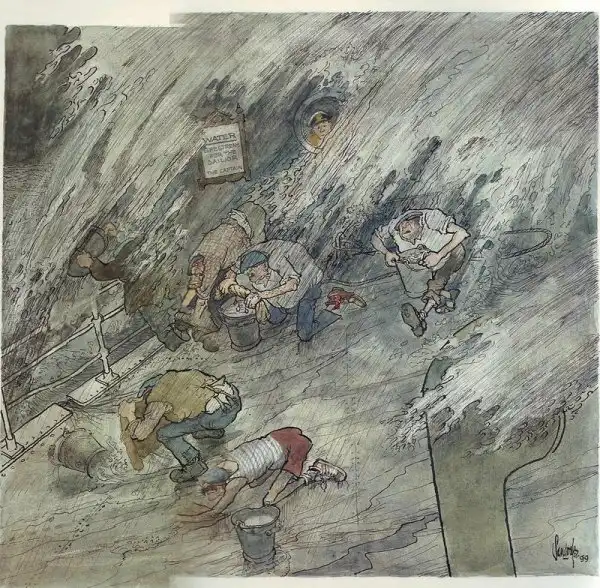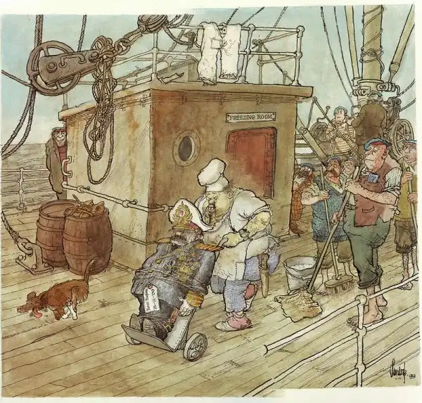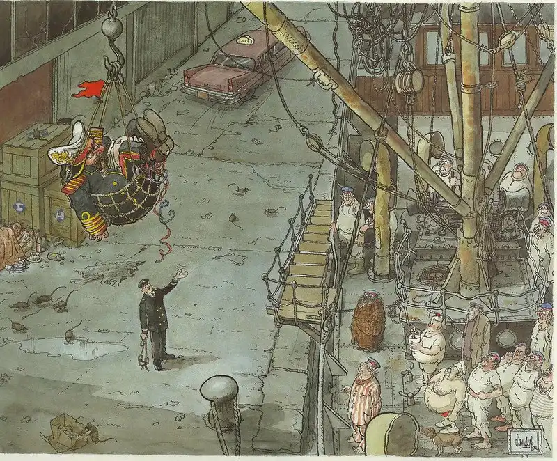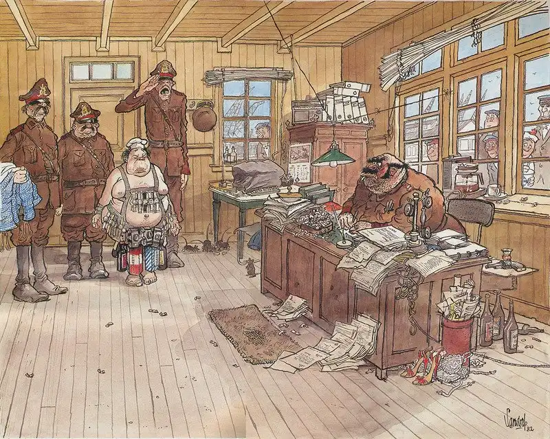 Хотелось бы пояснений к карикатура. А вообще, такое ощущение, что это иллюстрации к рассказу типа нашего "врунгеля"