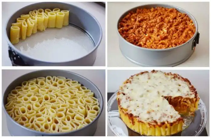 Фарш и макароны - отварные до полуготовности макароны выложить в форму, сверху фарш, залить соусом, запечь