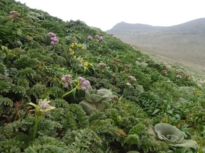 Ботаник экспедиции Джозеф Гукер, друг Чарлза Дарвина, описал фантастические поля гигантских цветов, растущих далеко за пределами тропиков, но имеющих несомненное сходство с тропическими видами.