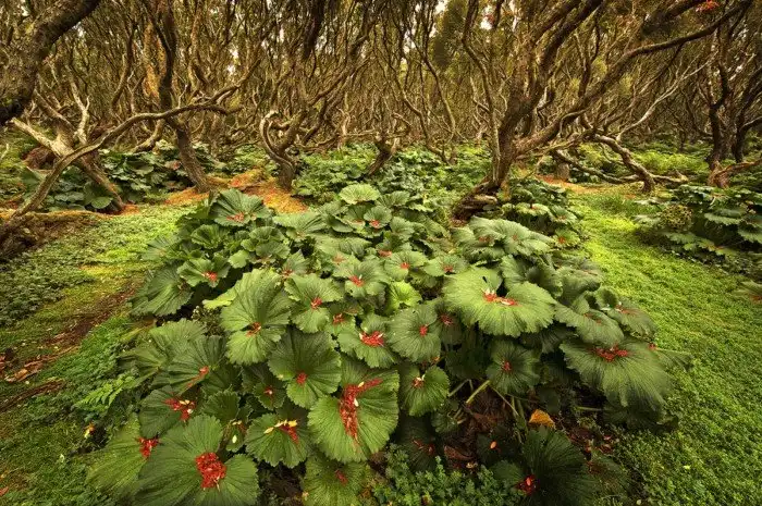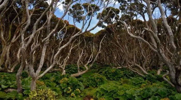 Такие свойства отлично подходят для местных условий - плодородных вулканических почв в климате с постоянными ветрами (острова расположены в "неистовых пятидесятых") и практическим отсутствием прямых солнечных лучей из-за постоянной облачности. Но только при одном уникальном условии - отсутствии растительноядных позвоночных. Их здесь и нет, но так было не всегда.