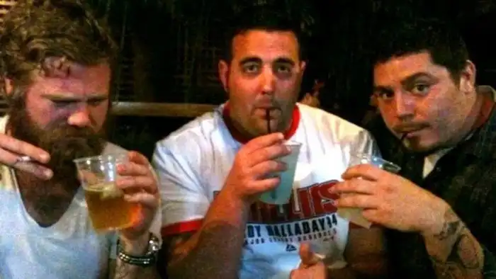 Звезда телешоу "Чудаки" слева на этой фотографии. Через пару недель, летом 2011-го, управляя автомобилем в состоянии опьянения и значительно превысив скорость, Данн вылетел с дороги. Машина загорелась, водитель и пассажир погибли. Данну было всего 34 года.