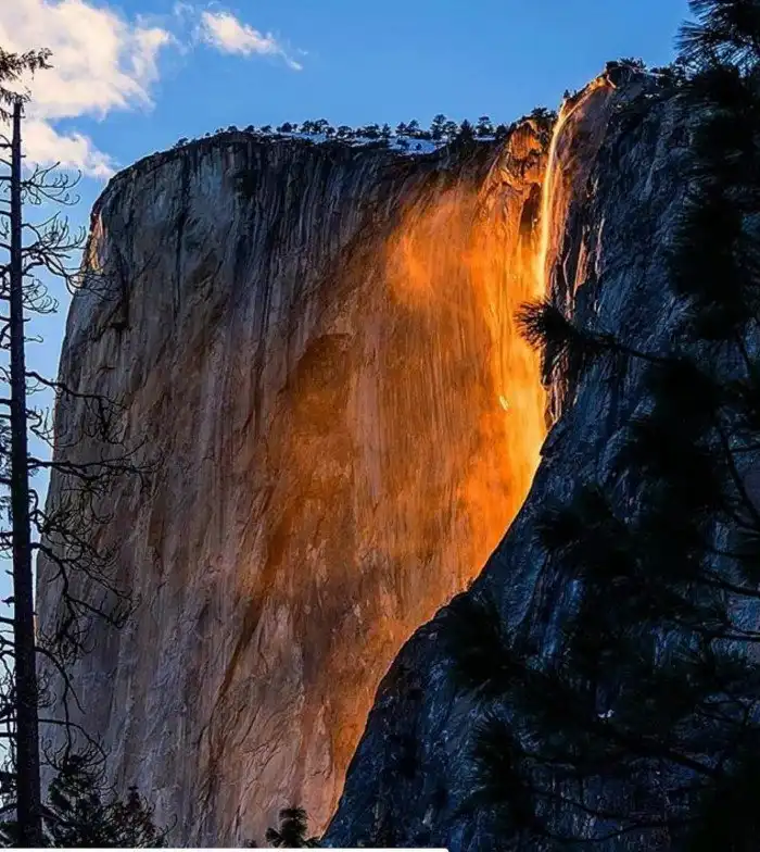 Каждый год в Йосемитском национальном парке, США, можно наблюдать завораживающий феномен «Огненный водопад» («Firefall») — светящийся водопад Лошадиный Хвост (Horsetail Fall).