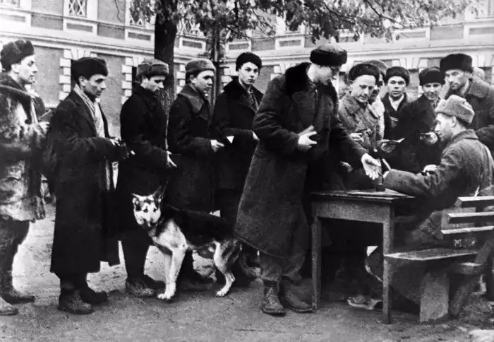 Жители Москвы записываются в ряды народного ополчения. СССР. 1941 год.