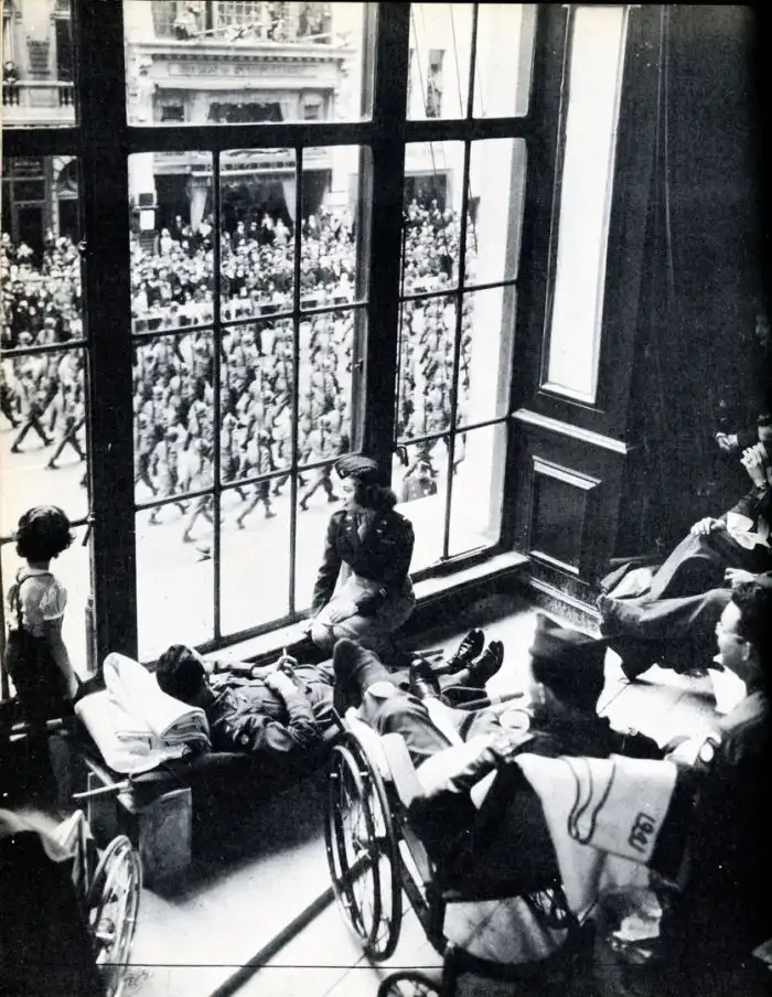 Раненые ветераны Второй мировой войны наблюдают парад Победы. Нью-Йорк. США.