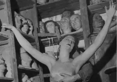 Художник Ив Кляйн за работой.Ив Кляйн всегда был новатором. Интерес данной работы в том, что она была выполнена художником без единого фактического прикосновения к доске трехметровой длины. Модели оставили на ней отпечатки своих обнаженных и покрытых краской тел, а художник затем обработал поверхность доски газовой горелкой. Это происходило примерно так: