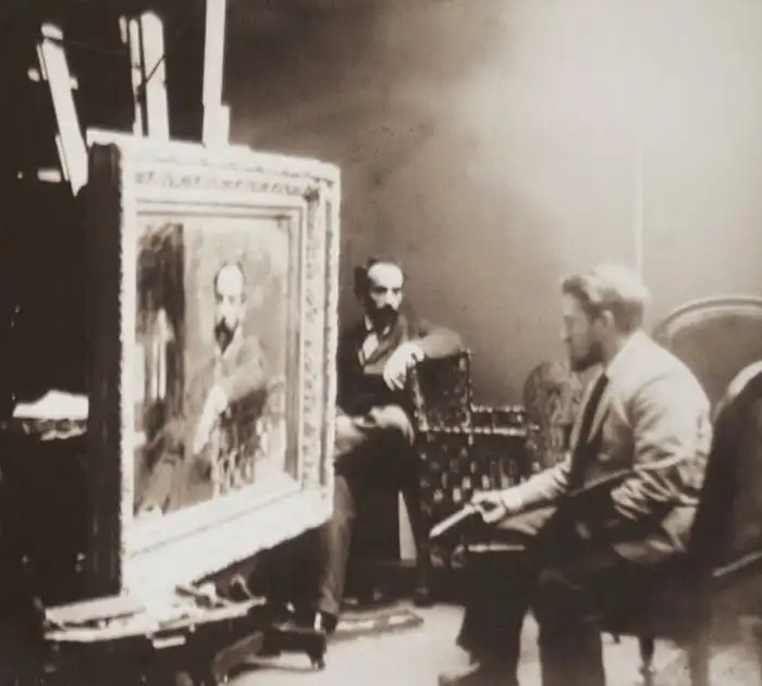Валентин Серов пишет портрет Исаака Левитана в его доме-мастерской, 1890-е.