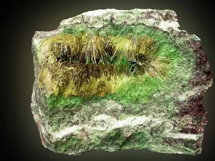 Принадлежит к классу силикатов. Из-за своей нитевидной основы легко проникает в легкие человека. И хотя в древности верили, что асбест приносит пользу, современными учеными было доказано, что он имеет свойство раздражать легкие, т.к. кристаллы минерала тут же вызывают канцерогенный эффект.