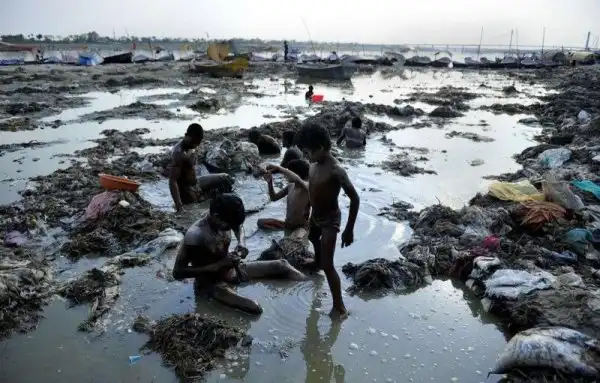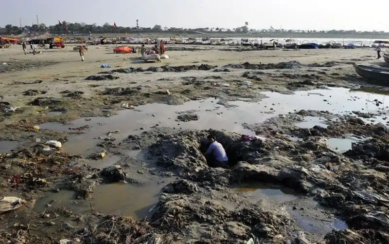 Индийцы копошатся в жиже Ганга в поисках украшений и монет