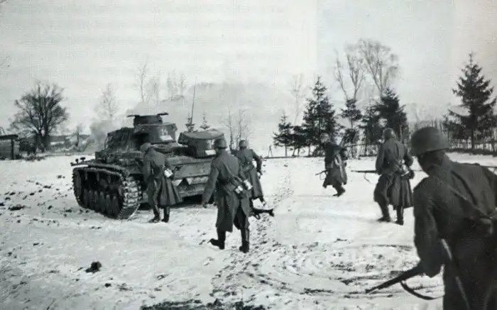 Ноябрь 1941 года. Немцы бредут в атаку под Волоколамском.