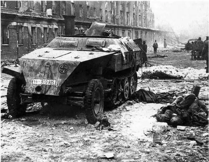 одбитый немецкий полугусеничный бронетранспортёр SdKfz-251