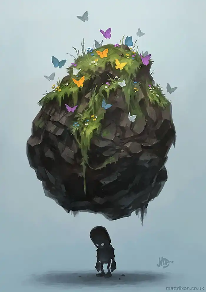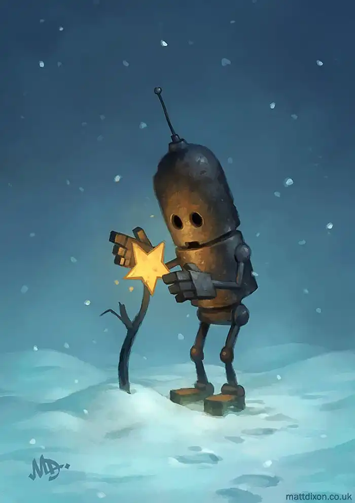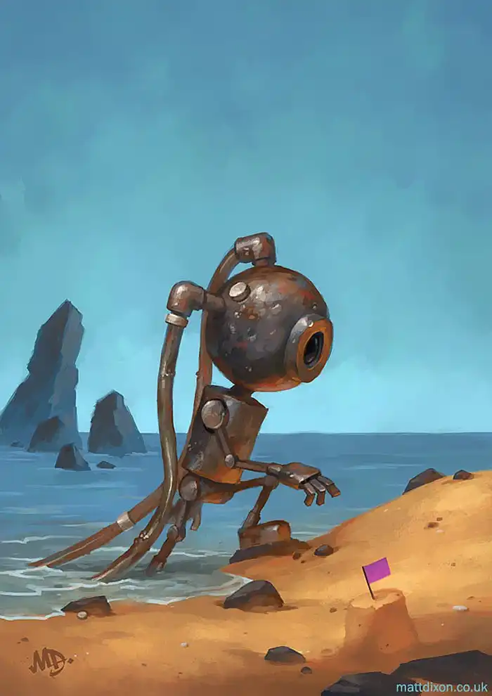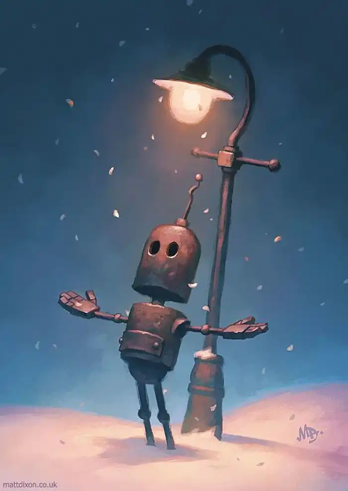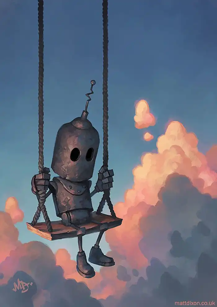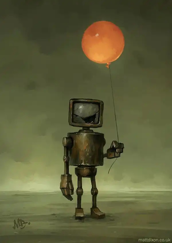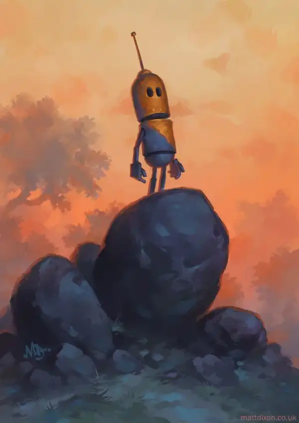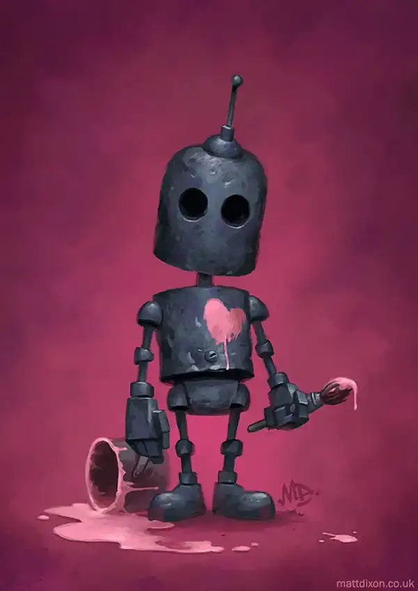 Мэтт Диксон уже и не помнит, когда впервые ему пришла идея рисовать роботов, но, нарисовав первого в 2006 году, художник уже не мыслит свое творчество без этих персонажей. Многим его работы кажутся грустными, но Мэтт считает их меланхоличными. Эти роботы, подобно людям, потерялись и открывают для себя удивительный окружающий мир.