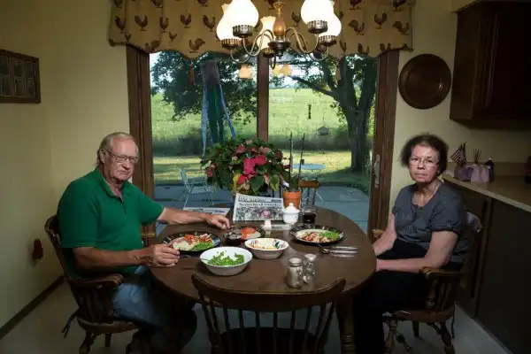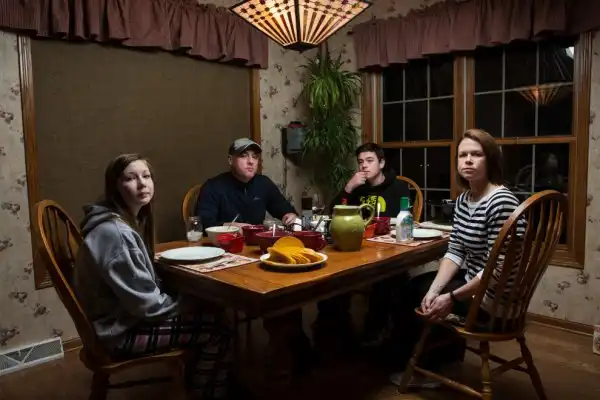 Фотограф Лоис Билефельд предлагает взглянуть изнутри на американцев во время интимных моментов в кругу семьи за столом. Когда она была маленькой, родители привили ей правильный застольный этикет. Поэтому Лоис задалась вопросом, соблюдают ли его все семьи и принято ли в них садиться за стол всем вместе.